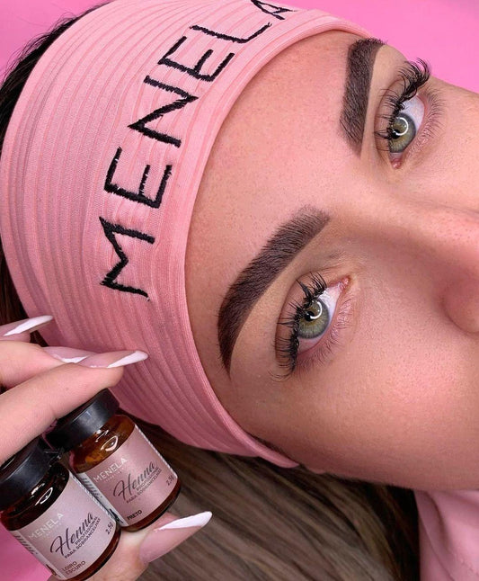 Menela Hair banda rosa para cuidado de la piel y diseñadora de cejas
